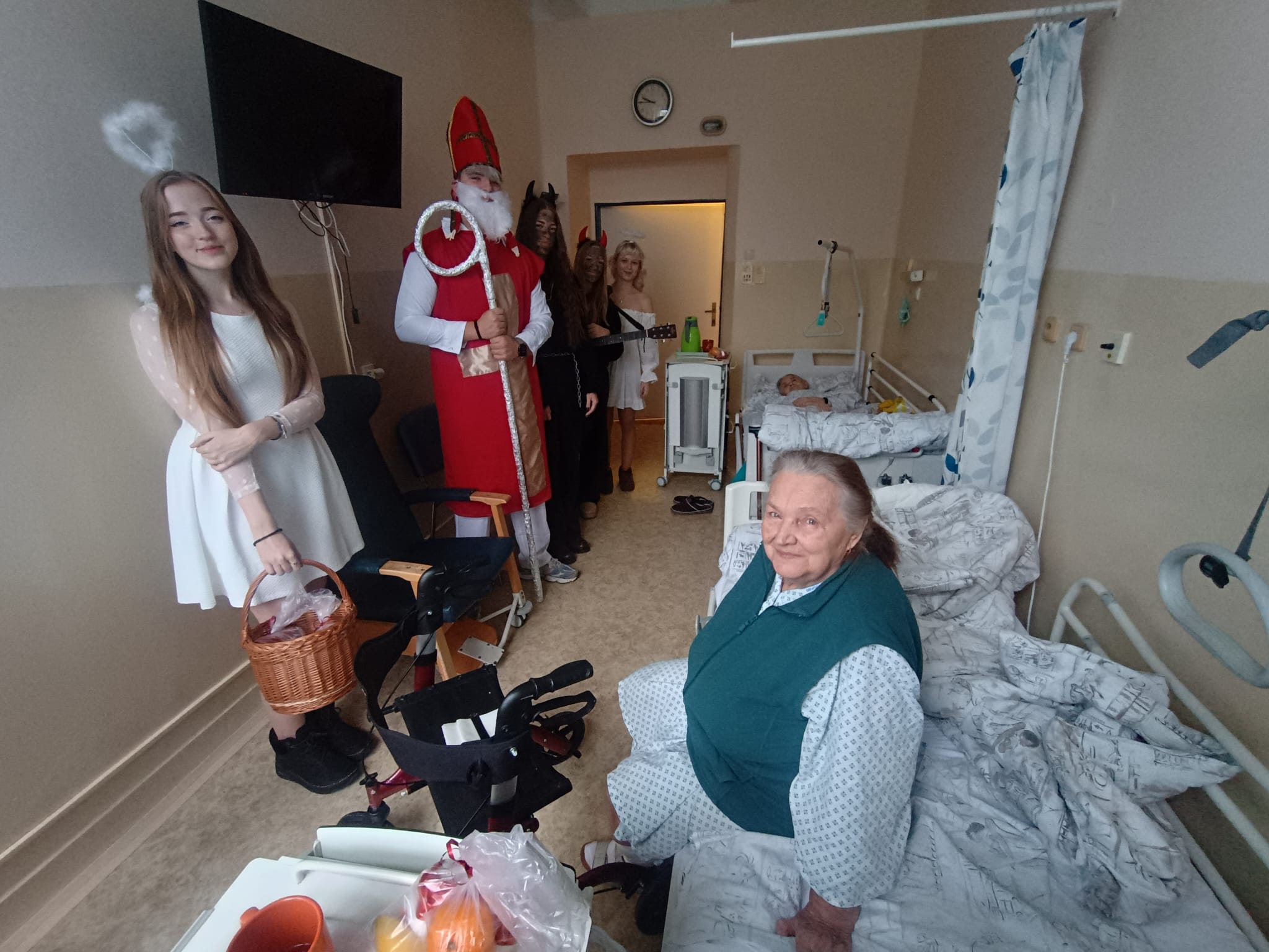 Vánoční atmosféra v Nemocnici AGEL Český Těšín: Žáci zdravotnické školy potěšili pacienty mikulášskou nadílkou